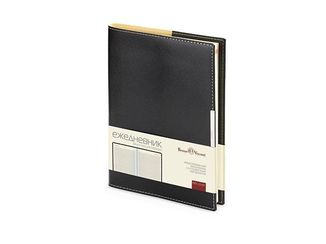 Удобный и практичный недатированный ежедневник в мягкой обложке из прочного переплетного материала. Контрастная прострочка белыми нитками по периметру привлекает внимание к изящной форме обложки с закругленными уголками. Обложка украшена металлическим шильдом. Линовка блока – клетка, с указанием времени дня. Формат удобен для ведения регулярных записей. Готов к персонализации.