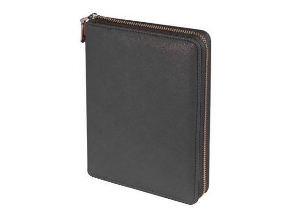 Великолепный ежедневник из качественной искусственной кожи, который заменит вам портмоне и органайзер. В ежедневнике предусмотрены карманы для карточек, сменный блок на кольцах. Внутри достаточно места для ручки и даже для мобильного телефона. Сам ежедневник закрывается на молнию. Его удобно брать с собой и на переговоры, и на деловой обед. Блок отпечатан в 2 цвета на бежевой бумаге плотностью 70 г/м2.