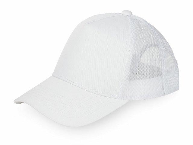 Пяти панельная бейсболка с передней частью из хлопка для комфорта головы и лба. Задняя часть из пластиковой сетки, которая отвечает за циркуляцию воздуха и обеспечивает изделию износостойкость. Для подгонки по размеру головы — пластиковая застежка.