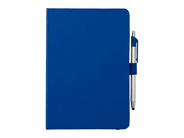 Блокнот с эластичной застежкой и ленточкой-закладкой под цвет блокнота. Включает пластиковую шариковую ручку-стилус и 80 листов белой линованной бумаги (70 г/м²).