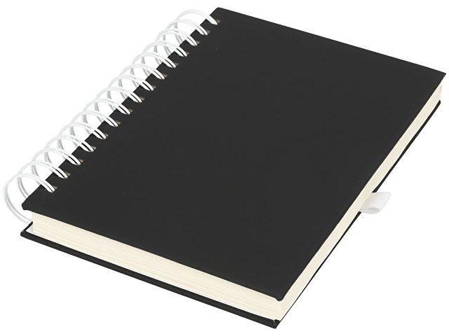 Блокнот Wiro. Новинка в нашей популярной коллекции блокнотов. В этом универсальном новом блокноте есть гладкая черная обложка из ПУ, цветная спираль и застежка-держатель для ручки. Содержит 160 листов линованной бумаги (70 г/м²) кремового цвета. Обложка из ПУ с металлической спиралью.