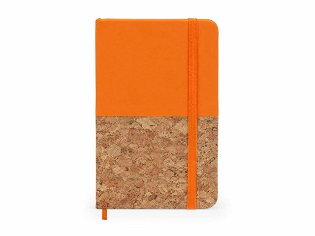 Блокнот формата А6. Комбинированная обложка из пробки/кожзаменителя. Закладка и резинка. 80 листов.
