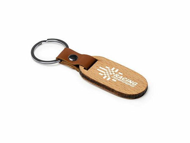 Брелок из натурального дерева с элегантной отделкой из искусственной кожи.