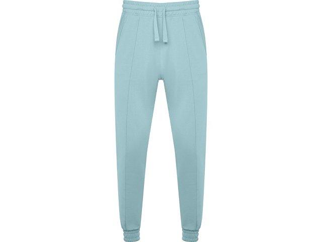 Прямые удлиненные брюки с манжетами на штанинах. Регулируемый эластичный пояс со шнуровкой. Два боковых кармана.