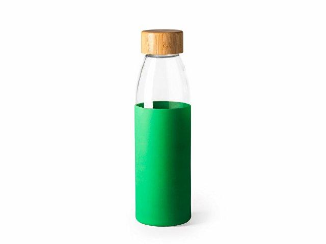 Стеклянная бутылка с бамбуковой пробкой и силиконовым чехлом пяти разных цветов. Объем 540 мл.