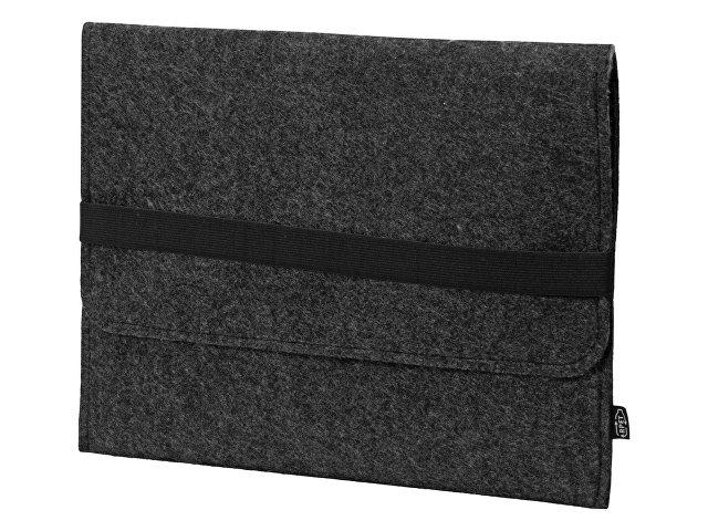 Чехол для ноутбука выполнен из фетра толщиной 3 мм. С передней стороны расположен органайзер размером 13×27 см для канцелярских принадлежностей, карт и телефона. Чехол фиксируется в закрытом виде с помощью эластичной ленты.
