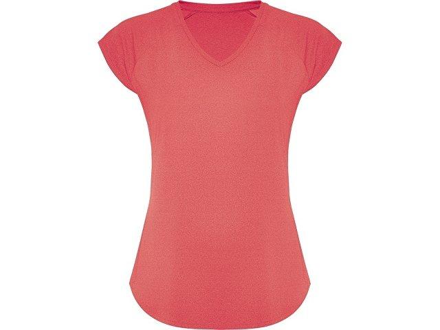 Спортивная женская футболка с коротким рукавом реглан. Вырез горловины V. Полотно из полиэстера на ощупь напоминающее хлопок. Приталенный силуэт.