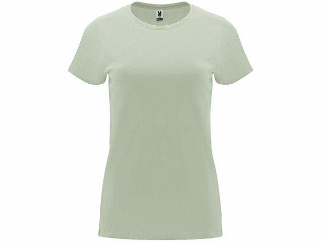 Женская приталенная футболка. Круглый вырез горловины обработан рибом 1х1. Шов горловины укреплен тесьмой.