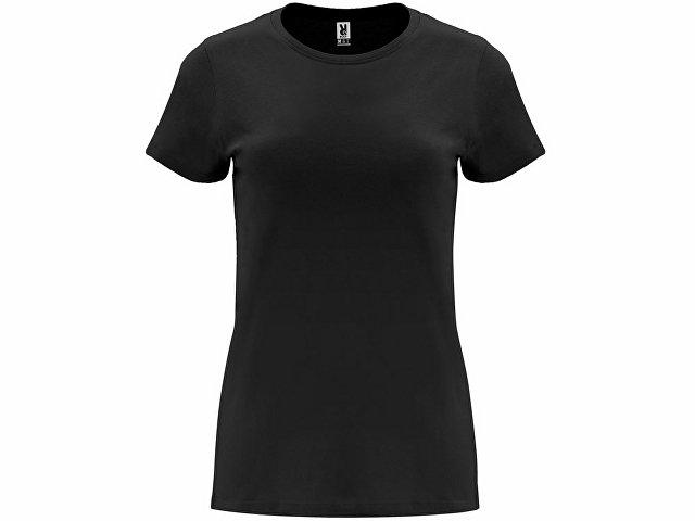 Женская приталенная футболка. Круглый вырез горловины обработан рибом 1х1. Шов горловины укреплен тесьмой.