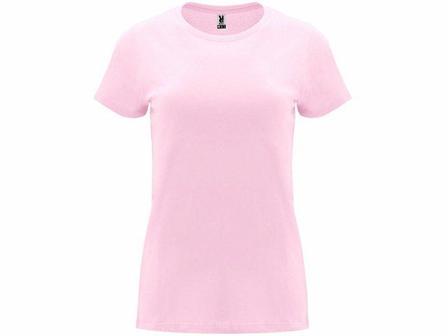 Женская приталенная футболка. Круглый вырез горловины обработан рибом 1х1. Шов горловины укреплен тесьмой.
