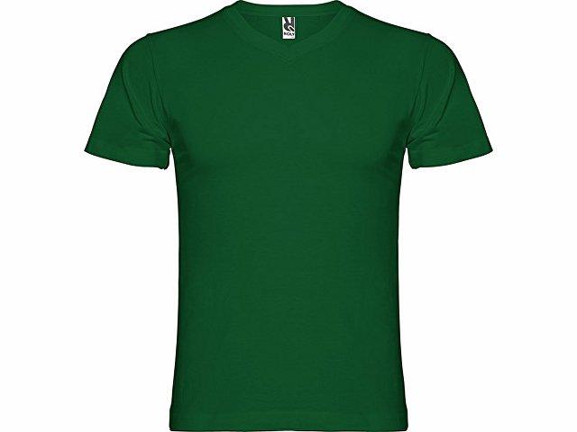 Мужская футболка без боковых швов с коротким рукавом и V-образным вырезом горловины, отделанном рибом 1х1. Горловина и плечевые швы дополнительно укреплены тесьмой.
