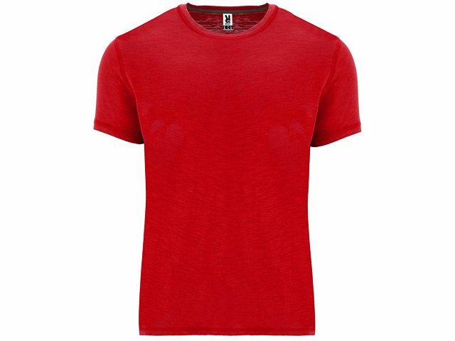 Мужская футболка с коротким рукавом из джерси с протяжками. Горловина отделана тем же полотном и отстрочена плоским швом, дополнительно укреплена тесьмой контрастного цвета. Боковые швы с отстрочкой плоским швом, с разрезом по низу, спинка немного длиннее полочки
