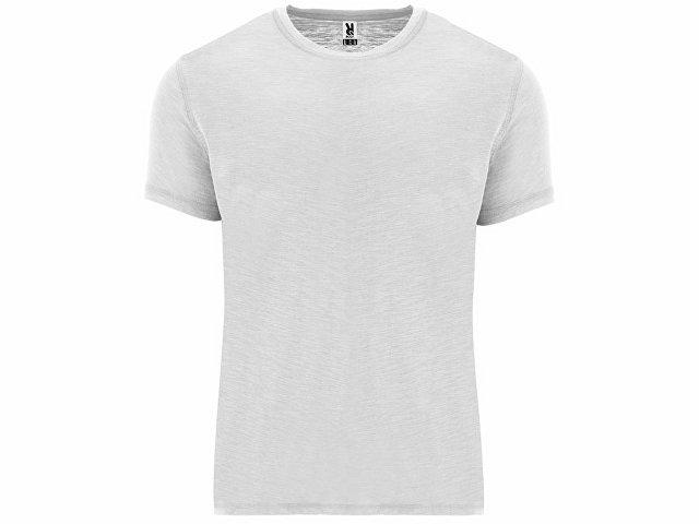 Мужская футболка с коротким рукавом из джерси с протяжками. Горловина отделана тем же полотном и отстрочена плоским швом, дополнительно укреплена тесьмой контрастного цвета. Боковые швы с отстрочкой плоским швом, с разрезом по низу, спинка немного длиннее полочки