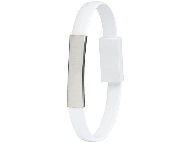 Bracelet Зарядный кабель 2-в-1. Зарядный кабель 2-в-1 состоит из USB-шнура типа A и коннектора, который подходит для устройств iOS и Android. Два коннектора можно соединить, чтобы превратить шнур в браслет. На пластину можно нанести логотип. Кабель предназначен только для зарядки. Силикон.