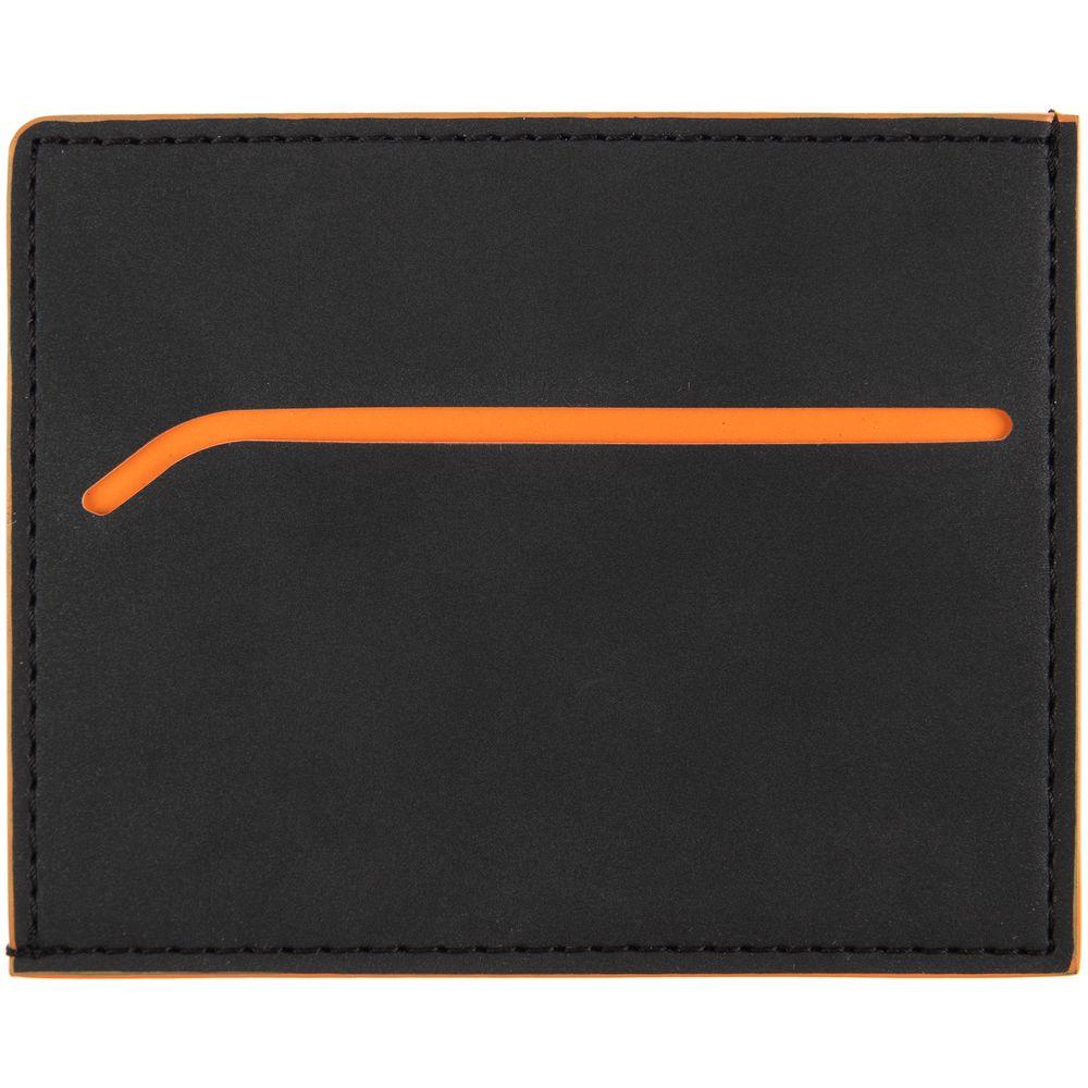 Чехол выполнен из материала Soft Touch Pearl, черный АА, дополнен окрашенным срезом края и внутренним карманом из цветного картона. Имеет 4 отделения для кредитных карт и 1 отделение для купюр.