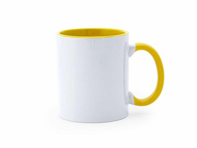 Керамическая кружка объемом 350 мл, для сублимации. Внутренняя отделка в тон ручке. Поставляется в белой упаковке.