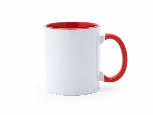 Керамическая кружка объемом 350 мл, для сублимации. Внутренняя отделка в тон ручке. Поставляется в белой упаковке.