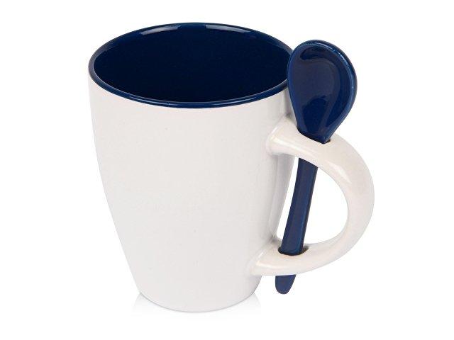 Стильная кружка на 320 мл с ложкой выполнены в контрастном сочетании цветов. Оригинальная форма ручки кружки позволяет крепить в ней ложку. Замечательный подарок для коллег по работе.