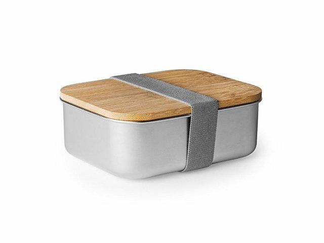 Ланч-бокс из нержавеющей стали 304 с бамбуковой крышкой и защитной резинкой. Объем 800 мл. Идеально подходит для персонализации и продвижения вашей компании.