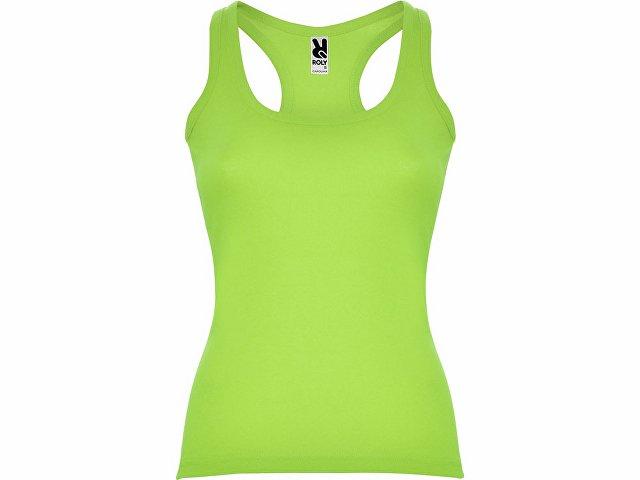 Майка приталенного силуэта с глубоким круглым вырезом горловины. Спортивная спинка, боковые швы.