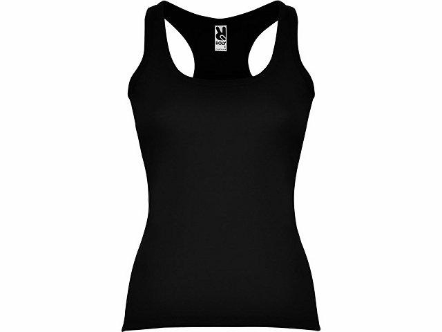 Майка приталенного силуэта с глубоким круглым вырезом горловины. Спортивная спинка, боковые швы.