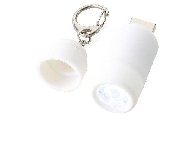 Брелок-фонарь Avior с зарядкой от USB. Светодиодный фонарик с зарядкой от USB с поворотной кнопкой вкл/выкл и металлическим кольцом для ключей. Батарейка включена в комплект. АБС-пластик с мягким на ощупь покрытием.