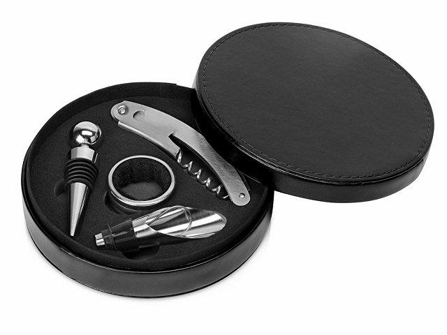 Набор винных аксессуаров состоит из воронки-аэратора, пробки, каплеуловителя и штопора. Металлические детали выполнены из нержавеющей стали, устойчивой к коррозии, также использованы силиконовая резина и АБС-пластик, абсолютно безопасный для человека.