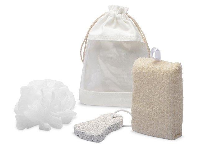 Набор для ванны состоит из мочалки, губки и пемзы, упакованных в симпатичный мешочек. Этот набор станет прекрасным подарком, который содержит необходимые для банных процедур приспособления на любой вкус: как видите, здесь предусмотрены и мочалка, и губка, что дает выбор адресату. Прозрачное окошко мешочка, на котором можно напечатать логотип, позволяет красиво преподнести содержимое и придает набору нарядный внешний вид.