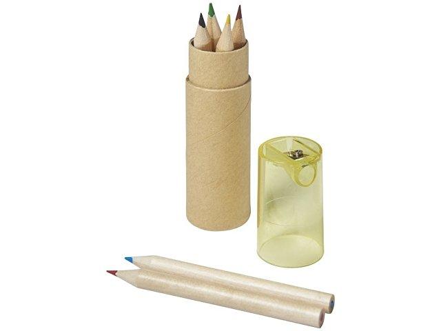 Набор содержит 6 цветных карандашей и футляр с крышкой-точилкой. Отличный вариант для создания оригинального промосувенира. Крышка позволит аккуратно собрать стружку в процессе подтачивания карандашей.