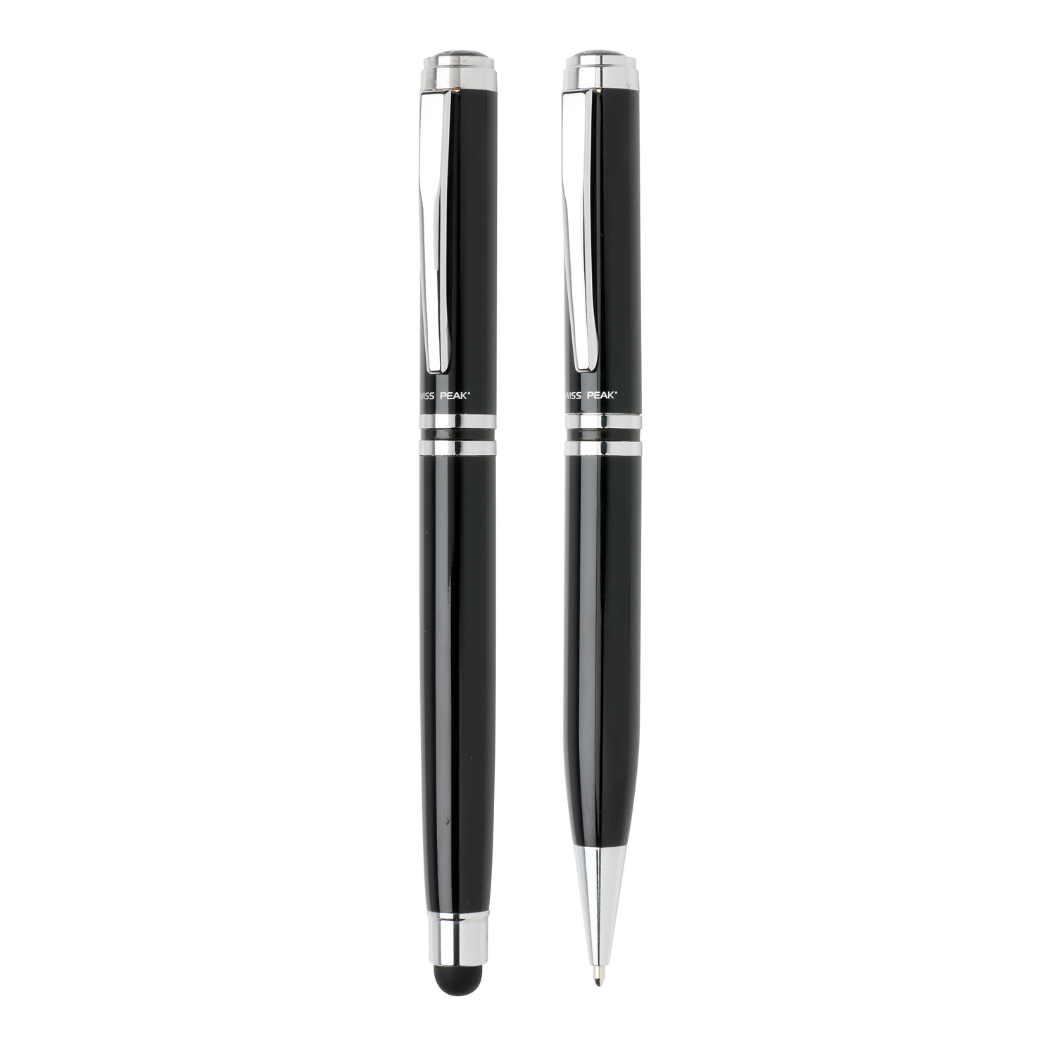 Набор ручек Swiss Peak executive включает в себя ручку-роллер из латуни со стилусом и шариковую ручку с логотипом Swiss Peak. Синие чернила. Поставляется в премиальном футляре и подарочной коробке.