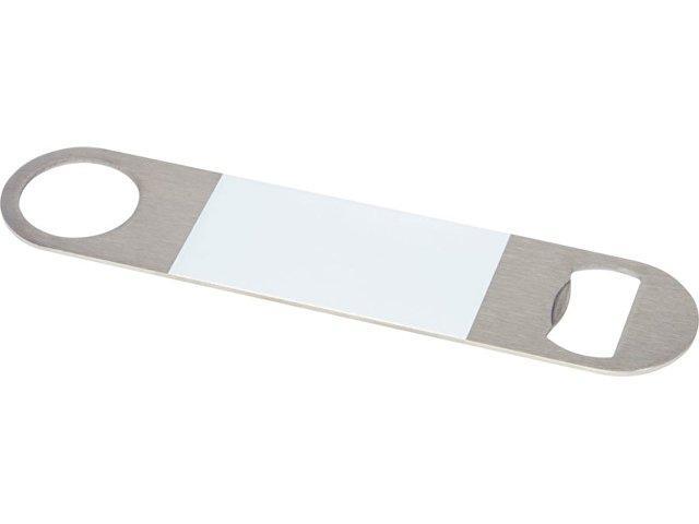 Открывалка для бутылок из нержавеющей стали с большой цветной областью в центре.