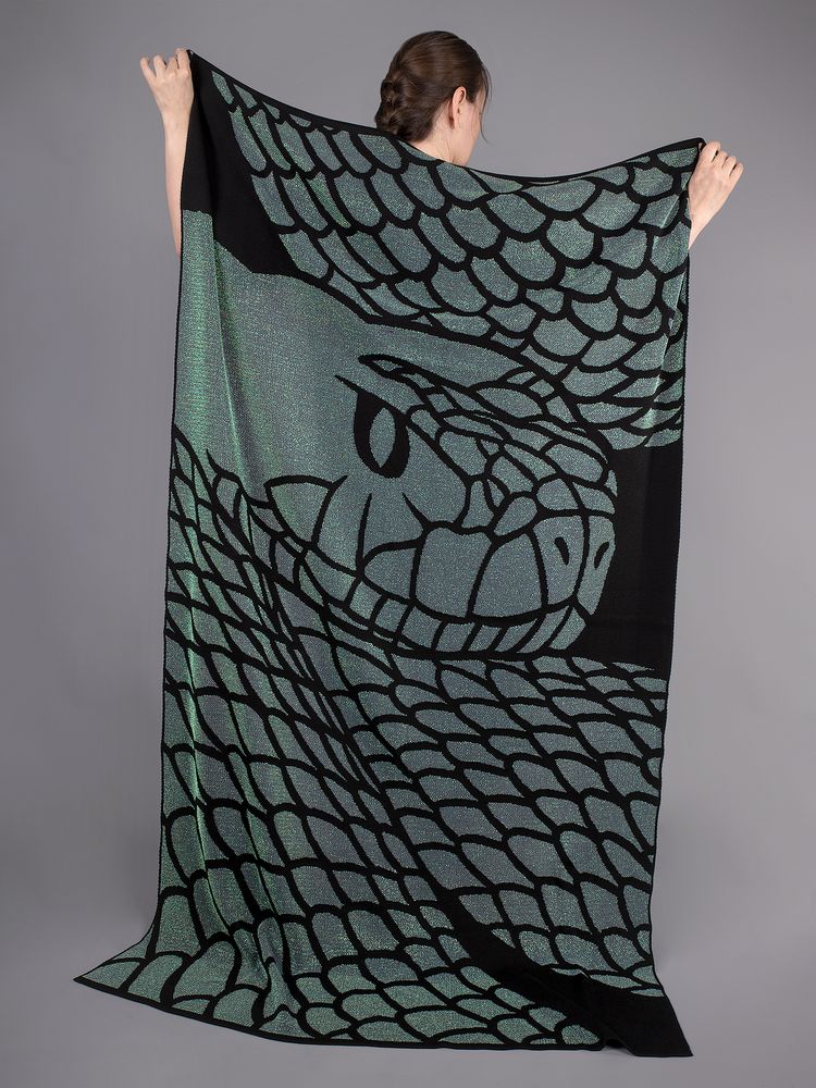 Плед Serpentica посвящен главной героине 2025 года — мудрой Змее, чья красота и гибкость тонко переданы в дизайне. В восточной культуре змея ассоциируется с долголетием, бессмертием и исцелением, а в мифологии разных народов часто выступает в роли помощника и защитника.