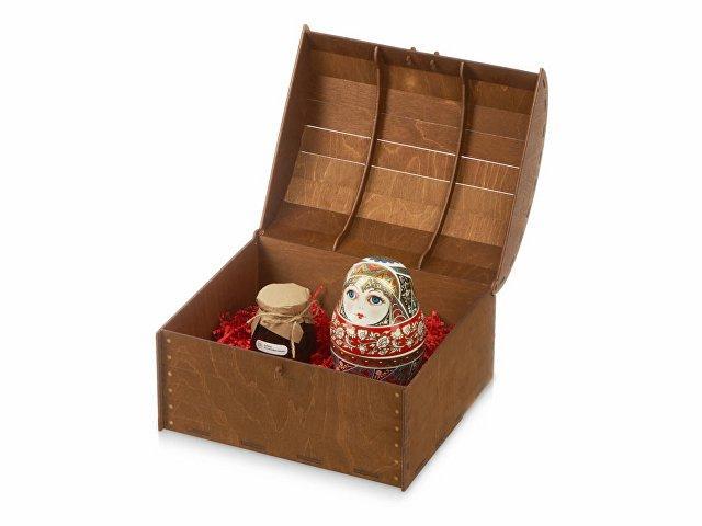 Подарочный набор «Матрешка» состоит из фарфорового штофа в виде матрешки и варенья из сосновых шишек. Такой сувенир – отличное решение для подарка руководителю или партнеру по бизнесу.