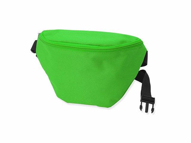 Поясная сумка с передним и задним карманом. Цветные молнии и ручки в тон поясной сумке. Черный ремешок и регулируемая застежка.