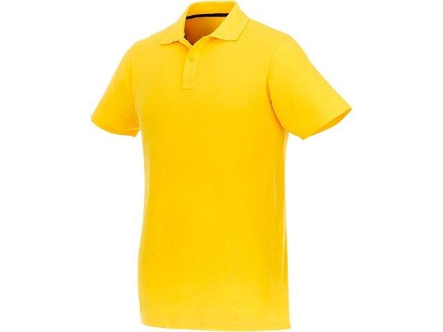 Мужское поло Helios с коротким рукавом. Отрезной-отрывной ярлык для комфорта. Воротник гладкой вязкой в рубчик. Планка с двумя пуговицами. Двойная строчка на воротнике и внизу изделия. Пуговицы в цвет изделия. Полоска на горловине в контрастном цвете. Трикотаж Piqué, 100 % хлопок. 180 г/м².