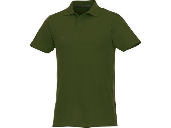 Мужское поло Helios с коротким рукавом. Отрезной-отрывной ярлык для комфорта. Воротник гладкой вязкой в рубчик. Планка с двумя пуговицами. Двойная строчка на воротнике и внизу изделия. Пуговицы в цвет изделия. Полоска на горловине в контрастном цвете. Трикотаж Piqué, 100 % хлопок. 180 г/м².