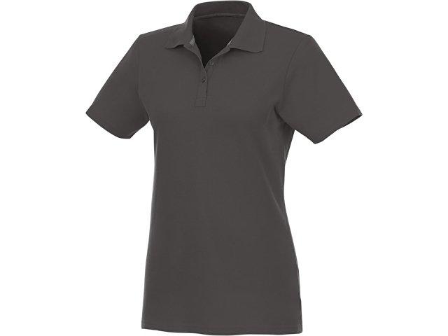 Женское поло Helios с коротким рукавом. Женская модель с разрезами по бокам. Отрезной-отрывной ярлык для комфорта. Воротник гладкой вязкой в рубчик. Планка с тремя пуговицами. Двойная строчка на воротнике и внизу изделия. Пуговицы в цвет изделия. Полоска на горловине в контрастном цвете. Трикотаж Piqué, 100 % хлопок. 180 г/м².