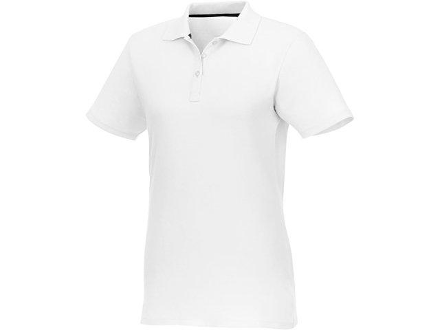 Женское поло Helios с коротким рукавом. Женская модель с разрезами по бокам. Отрезной-отрывной ярлык для комфорта. Воротник гладкой вязкой в рубчик. Планка с тремя пуговицами. Двойная строчка на воротнике и внизу изделия. Пуговицы в цвет изделия. Полоска на горловине в контрастном цвете. Трикотаж Piqué, 100 % хлопок. 180 г/м².