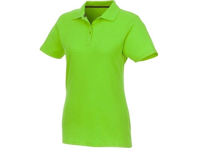 Женское поло Helios с коротким рукавом. Женская модель с разрезами по бокам. Отрезной-отрывной ярлык для комфорта. Воротник гладкой вязкой в рубчик. Планка с тремя пуговицами. Двойная строчка на воротнике и внизу изделия. Пуговицы в цвет изделия. Полоска на горловине в контрастном цвете. Трикотаж Piqué, 100 % хлопок. 180 г/м².
