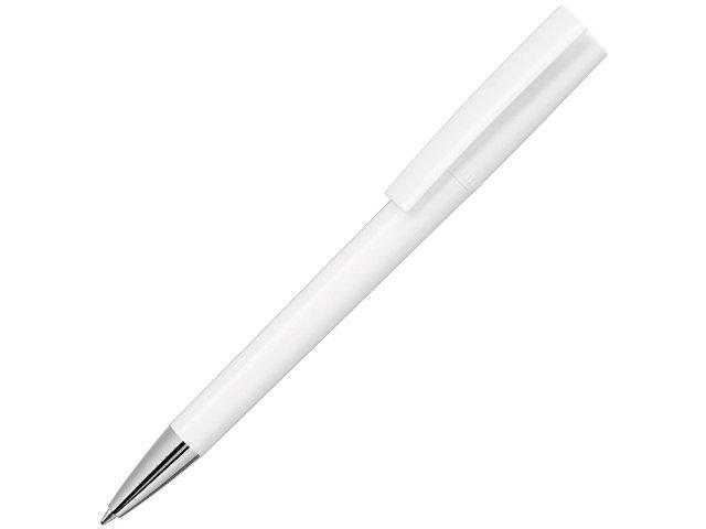 Шариковая ручка с поворотным механизмом, белым или черным глянцевым тонированным корпусом, серебристой заглушкой в верхней части и тяжелым металлическим наконечником с глянцевой хромированной отделкой
