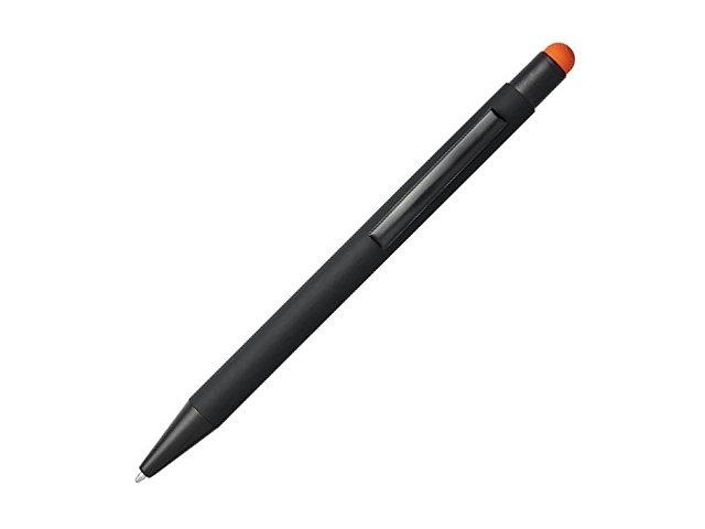 Резиновая шариковая ручка-стилус Dax. Шариковая ручка-стилус с резиновым покрытием и нажимным механизмом. Цвет наконечника стилуса соответствует цвету нижней части ручки с лазерной гравировкой. Ручка имеет металлический зажим, резиновый стилус и изготовлена из алюминия. Длина непрерывной линии: 450 м. Металл.