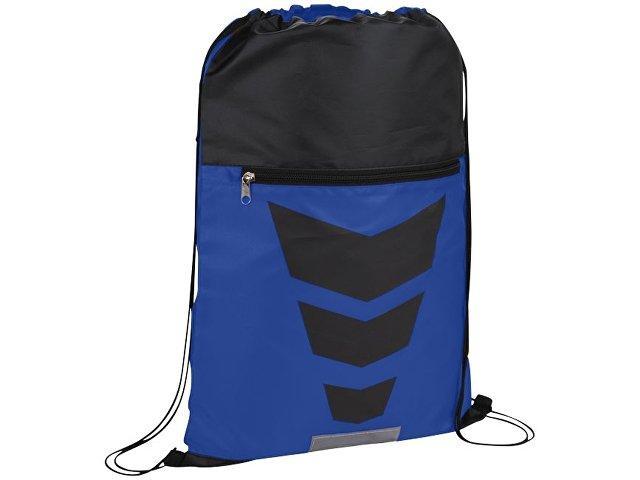 Рюкзак на шнурке Courtside. Рюкзак на шнурке с отражающими деталями в привлекательном дизайне. Он позволит быть вам более видимыми в темноте. Большое основное отделение затягивается на шнурок, небольшой карман на молнии спереди. 210D полиэстер.