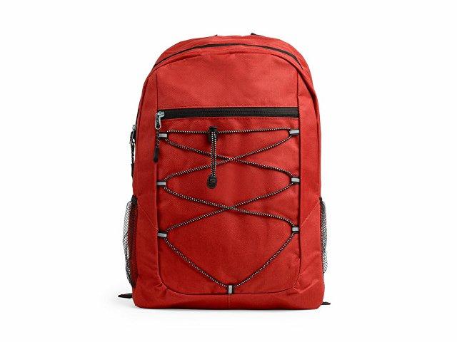 Спортивный рюкзак из полиэстера 600D. Основное отделение и передний карман на молнии. Переднее отделение на эластичном шнуре с сетчатыми боковыми карманами. Мягкая спинка и лямки.