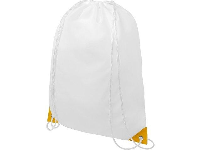 Рюкзак со шнурком и главным отделением на шнуровке белого цвета. Имеет цветные укрепленные углы. Прочность до 5 кг.