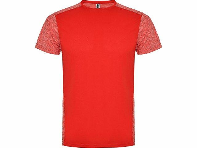 Футболка с коротким рукавом из технологического полотна. Круглый вырез горловины. Комбинация двух полиэстеровых полотен. Основное полотно на полочке со структурой, дополнительное полотно на спинке, рукавах и плечах с меланжевым эффектом. Задняя часть немного длиннее. Легко сохнущее дышащее полотно.