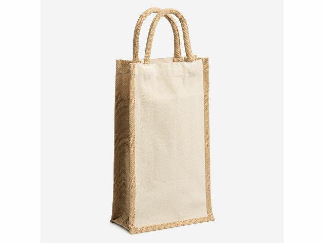 Сумка из ламинированного джута и хлопка. Двойное отделение и усиленные ручки. Идеально подходит для двух бутылок.