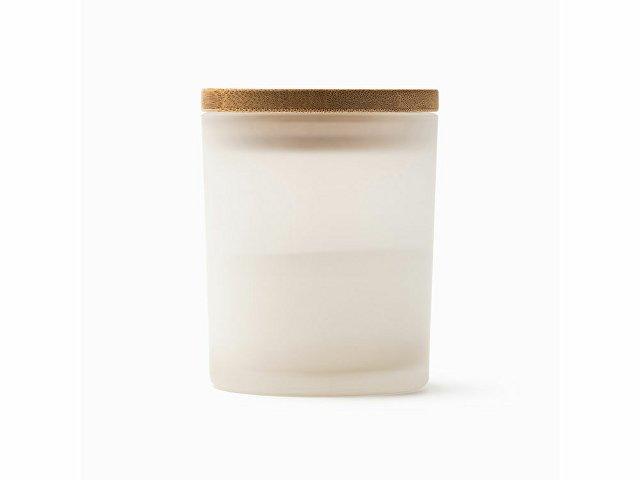 Ароматическая свеча в подсвечнике из полупрозрачного стекла с бамбуковой крышкой. Аромат ванили.
