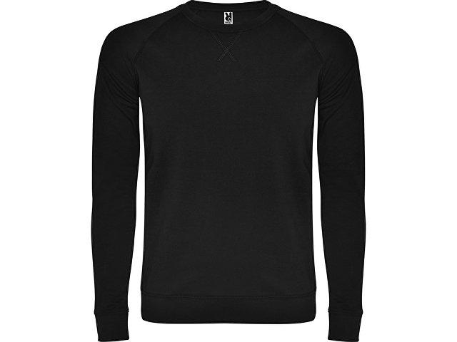 Свитшот с рукавом реглан из хлопкового футера без начеса. Манжеты по рукавами низу изделия из риба 1х1. Круглый вырез горловины дополнительно усилен тесьмой.
