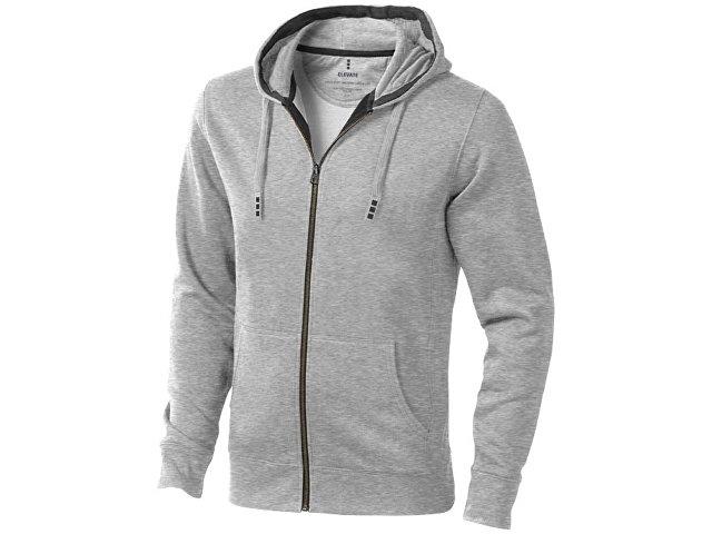 Свитер Arora с капюшоном и застежкой-молнией на всю длину. Стандартный покрой. Резинка 2х2 на боковых вставках, поясе и манжетах. Карман кенгуру. Мужская и женская модели с завязками на капюшоне. Подкладка внутри капюшона. Подкладка на полумесяце. Атласная лента внутри горловины. Принт лого сзади в тон изделия. Серебристые люверсы с лого. Трикотаж: 82% хлопок, 10% вискоза и 8% полиэстер, чесаная внутренняя сторона. 300 г/м².
