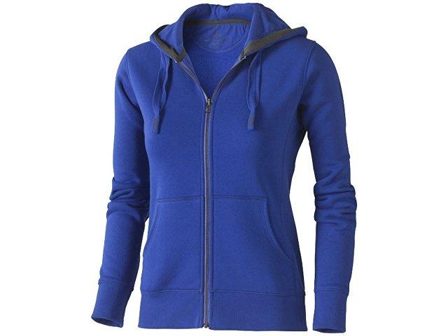 Женский свитер Arora с капюшоном и застежкой-молнией на всю длину. резинка 2х2 на боковых вставках, поясе и манжетах. Карман кенгуру. Мужская и женская модели с завязками на капюшоне. Подкладка внутри капюшона. Подкладка на полумесяце. Атласная лента внутри горловины. Контрастный цвет внутри капюшона. Принт лого сзади в тон изделия. Серебристые люверсы с лого. Трикотаж: 80% хлопок и 20% полиэстер, чесаная внутренняя сторона. 300 г/м².